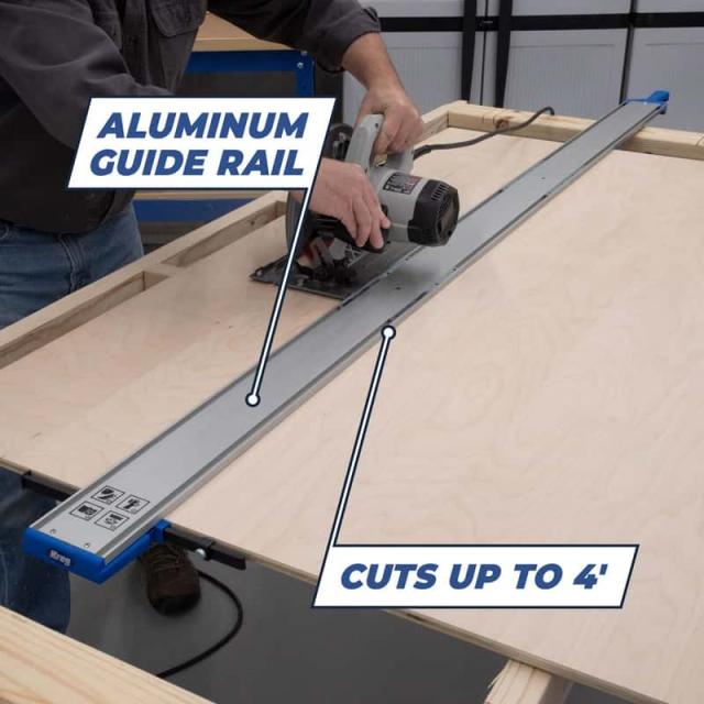 positivenotes: [Crosscut and rip cut up to 4 ft. (122 cm) in sheet goods Aluminum guide rail leads cuts precisely along a straight line Cutline indicators help position cuts perfectly Built-in clamping with GripMaxx secures rail to material Make perfectly straight cuts in sheet goods up to 4 ft. in length Cutting Capacity: 4 ft.] length:48 inch unitCode:INH} material:Aluminum/Plastic category:Straight Edge Guide