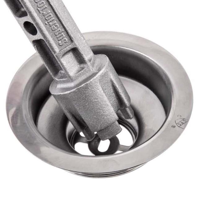 color:GRAY positivenotes: [Tub drain wrench New stronger design tested to 100 ft. lbs. of torque Innovative patented design to install and remove tub drains without scratching fine finishes Only tool of its kind that can be turned with a 3/8 or 1/2 ratchet wrench and extension from either end Will also remove or install 1/2 square plastic toilet seat nuts] material:Metal category:Drain Wrench